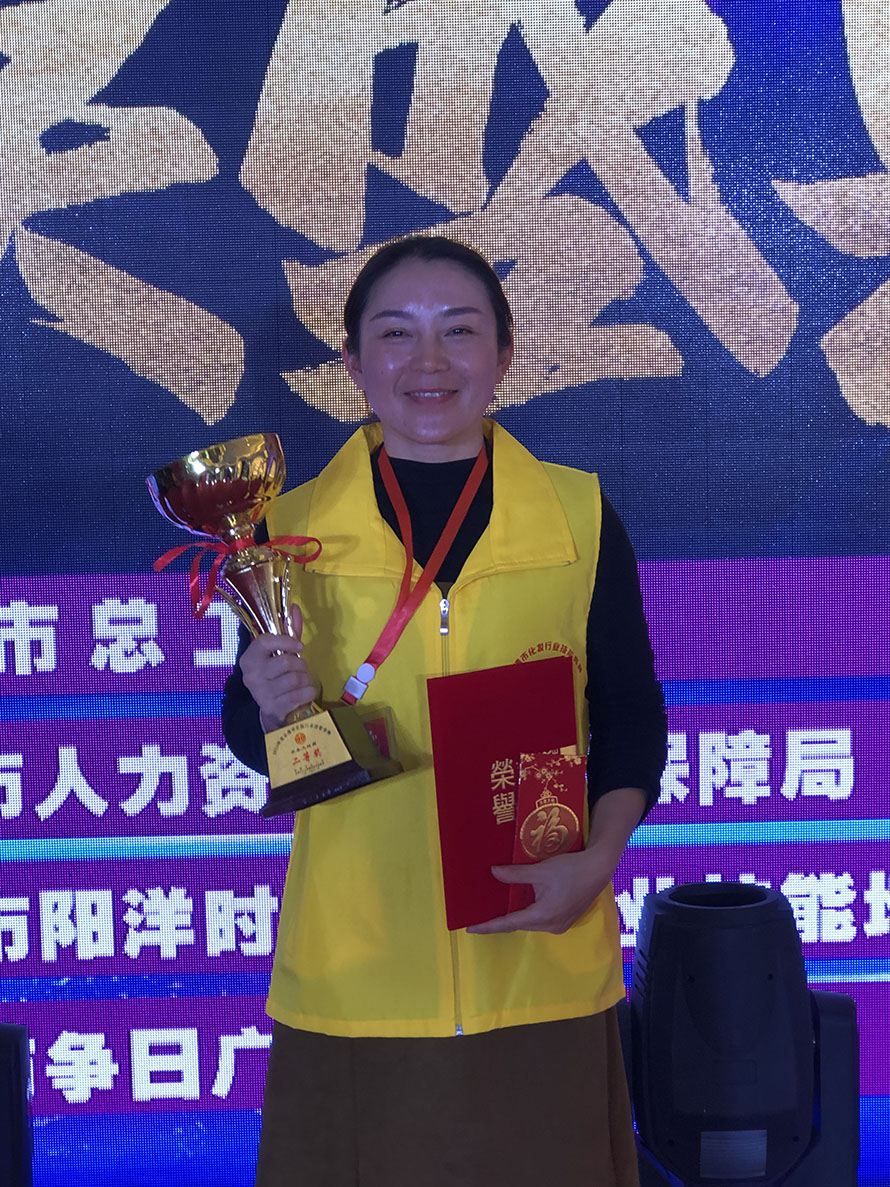 大賽紋繡組季軍,陽洋學(xué)校2019年學(xué)員董曉潔,在加入學(xué)校學(xué)習(xí)前是一名優(yōu)秀的幼師,也是三個孩子的母親,急切需要改變自己的生活現(xiàn)狀, 一開始總是害怕自己沒時間學(xué)不會,學(xué)校為她的情況提供了特殊通道,僅僅一個月時間,就取得了這樣的成就。