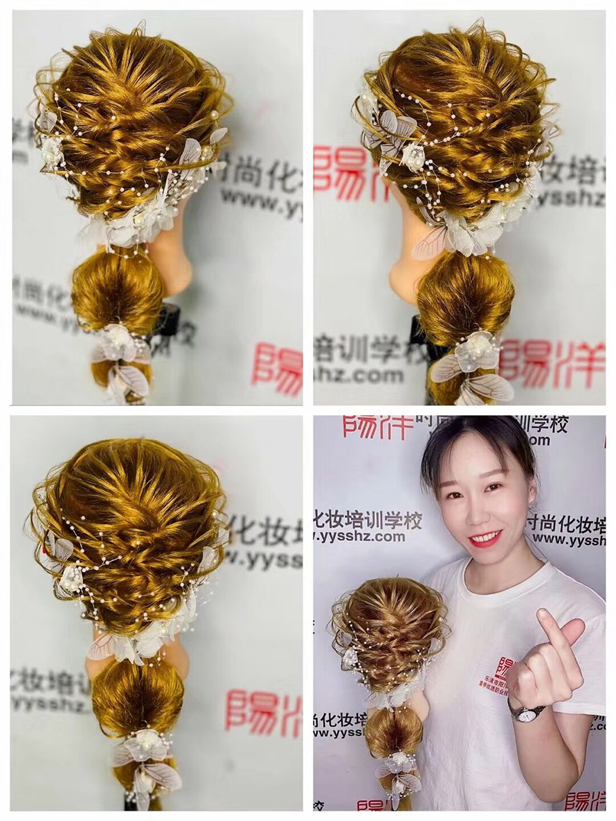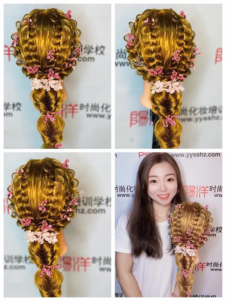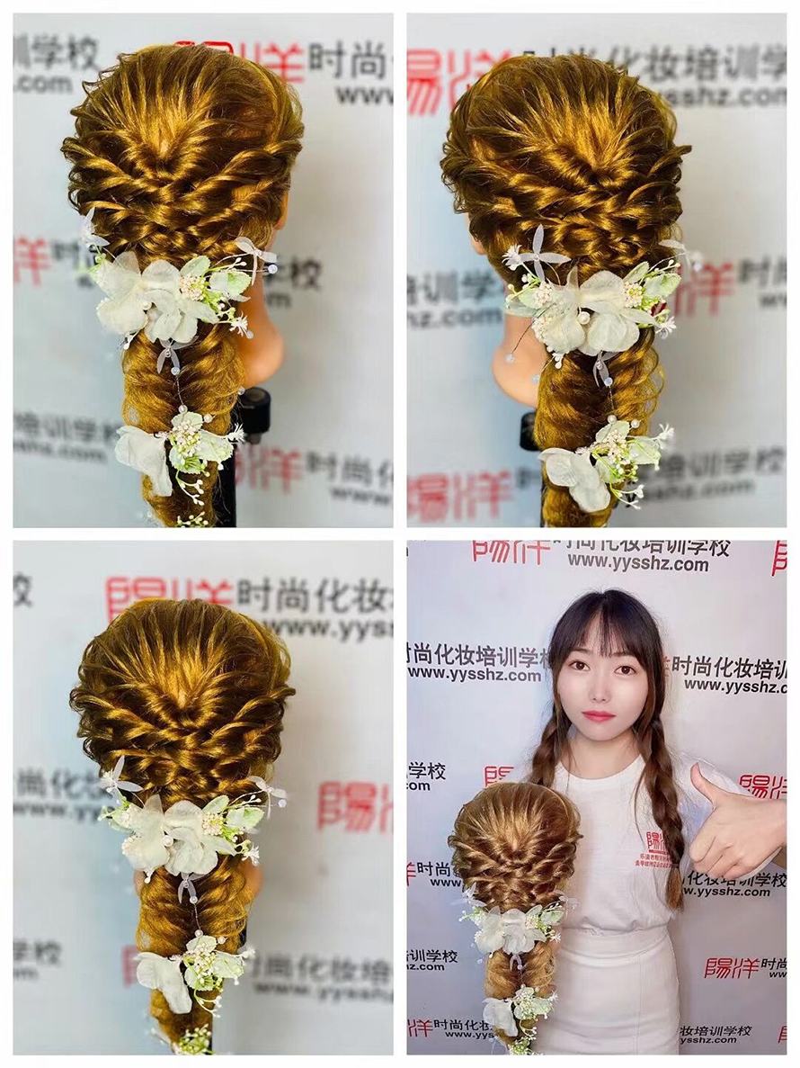 陽洋學(xué)校零基礎(chǔ)學(xué)員新娘鮮花編發(fā)造型