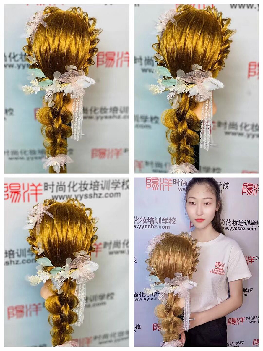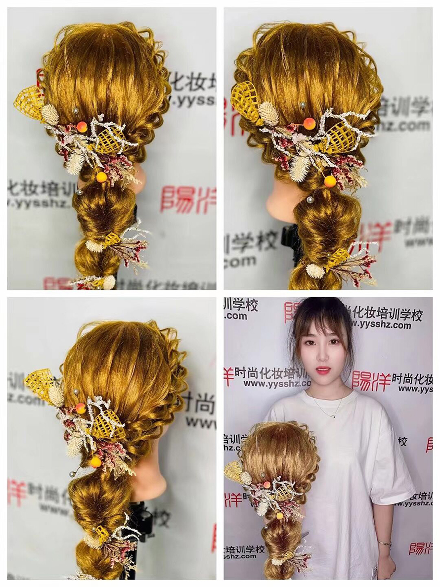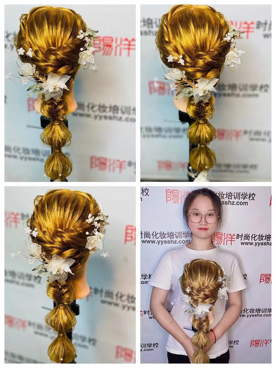 陽洋學(xué)校零基礎(chǔ)學(xué)員新娘鮮花編發(fā)造型