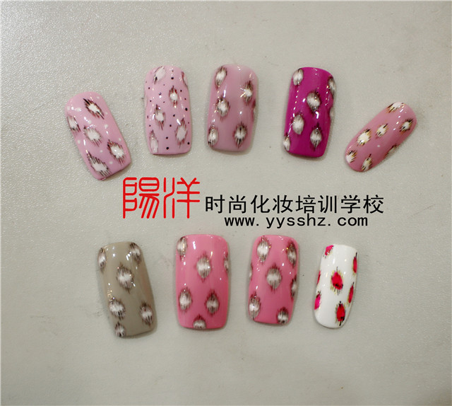 關(guān)注“樂清陽洋化妝美甲學(xué)?!毕乱黄诮榻B豹紋美甲的畫法 ![]() |