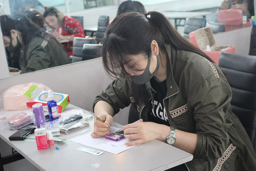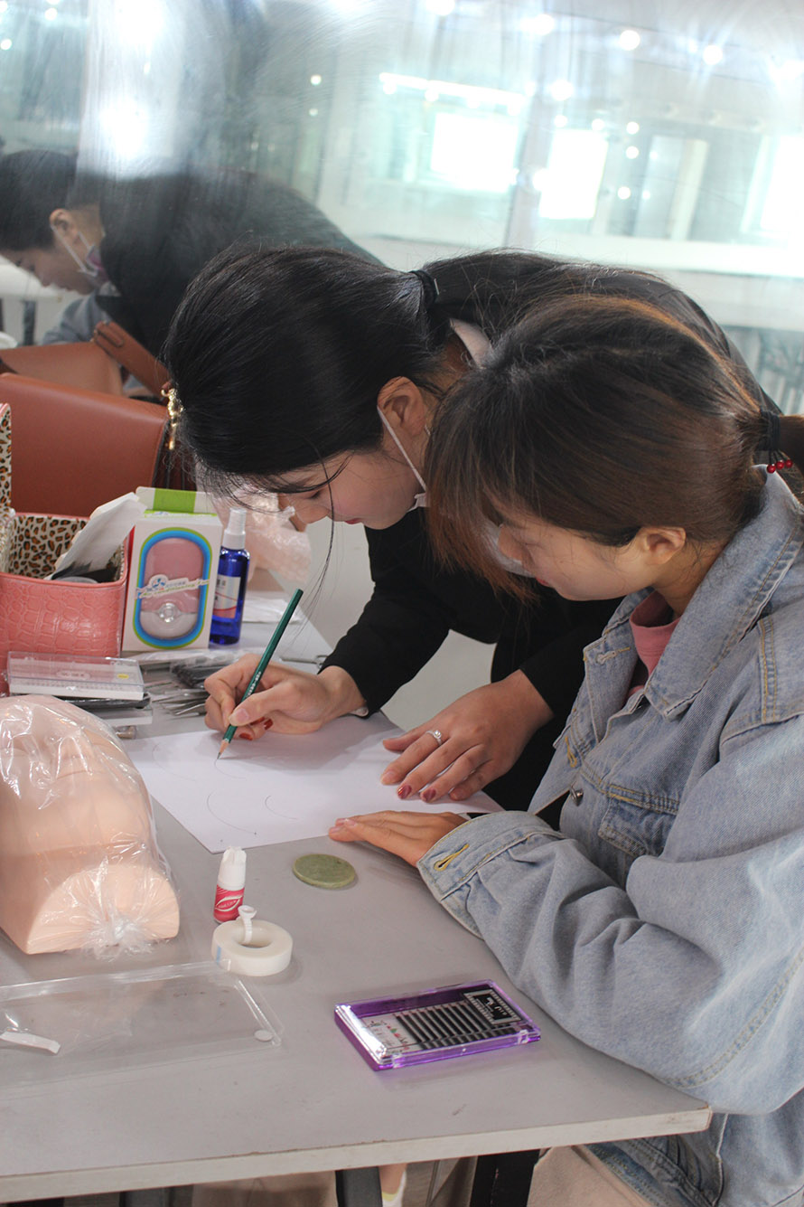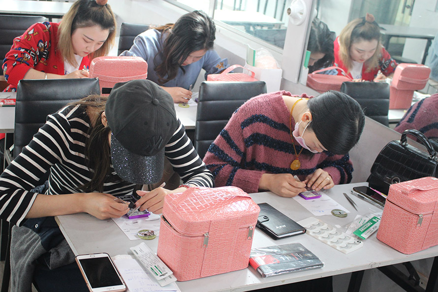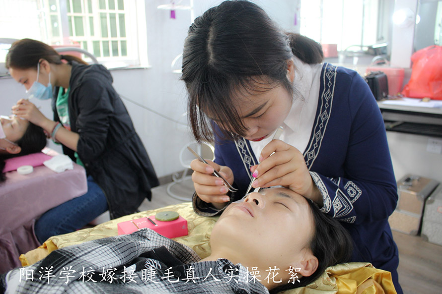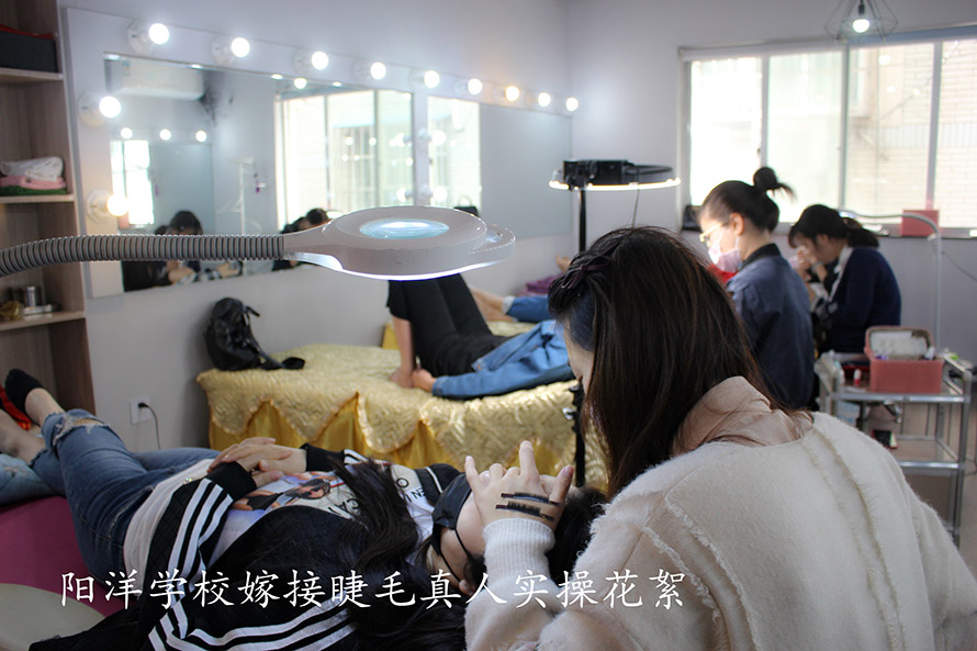 接下來陽洋小編帶你看看陽洋學(xué)校嫁接睫毛的課堂吧