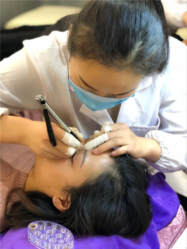 老師一對(duì)一教學(xué),先仿皮練習(xí)眉形,眉形是紋繡練習(xí)的基礎(chǔ)