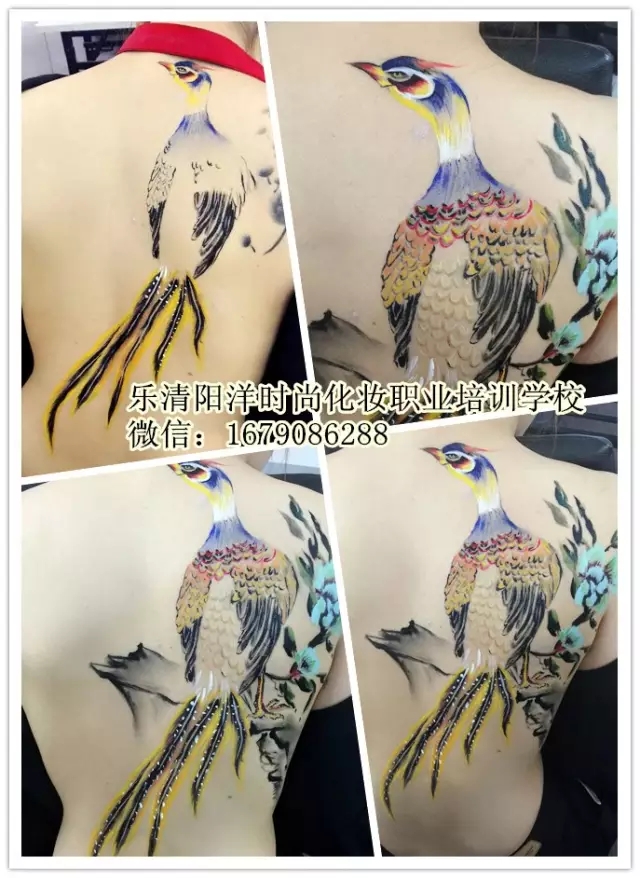 人體彩繪是美容師運(yùn)用色彩在人的身體四肢上繪畫出各種各樣的圖案,跟一般在畫家畫在畫布上。用油彩作畫不一樣,彩繪藝術(shù)的載體是具動(dòng)感和生命力的人的身體,它是流動(dòng)的,立體的藝術(shù)作品。人體彩繪給人帶來一種強(qiáng)烈的視覺沖擊,挑戰(zhàn)傳統(tǒng)的審美理念。 下面樂清陽洋化妝培訓(xùn)學(xué)校4個(gè)月學(xué)生人體彩繪作品
