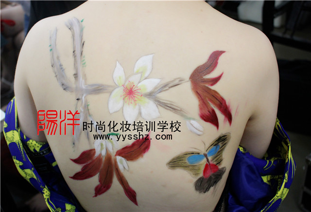 人體彩繪是化妝師運(yùn)用色彩在人的身體、四肢上繪畫出各種各樣的圖案,