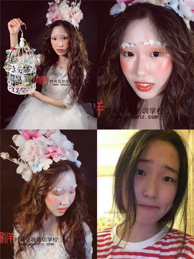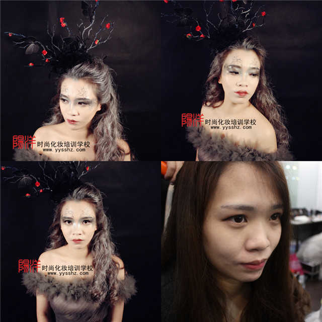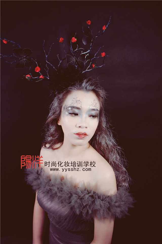 有了好的裝飾, 重頭戲就是創(chuàng)意無限的妝面, 來欣賞下陽洋化妝學員彩妝整體造型賞析: