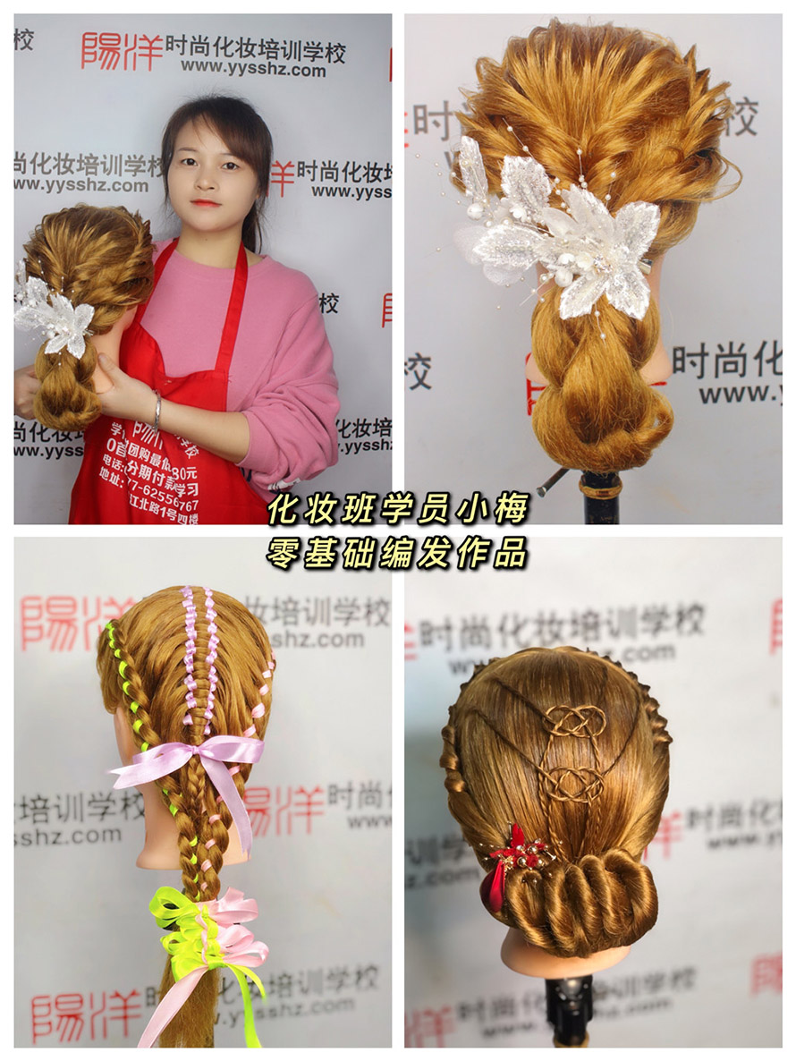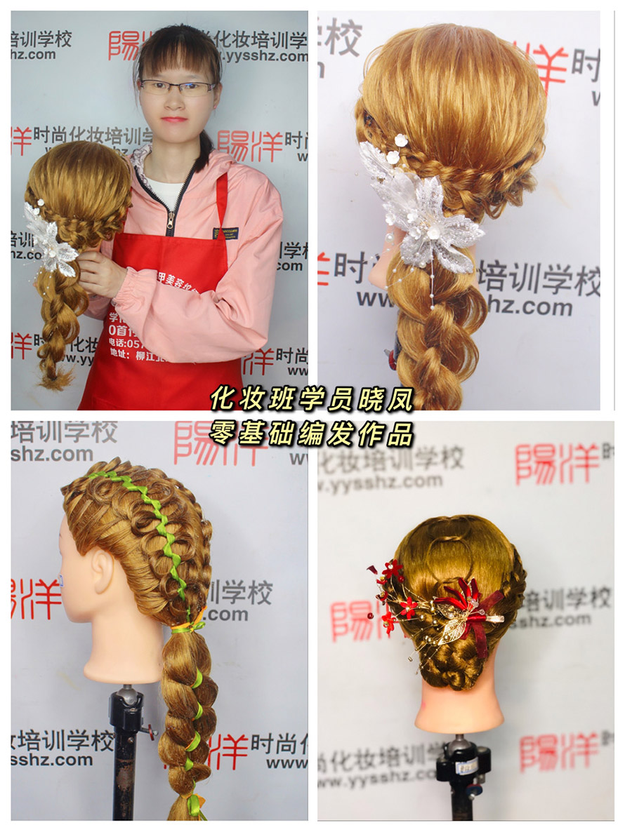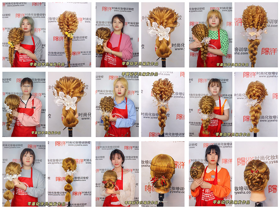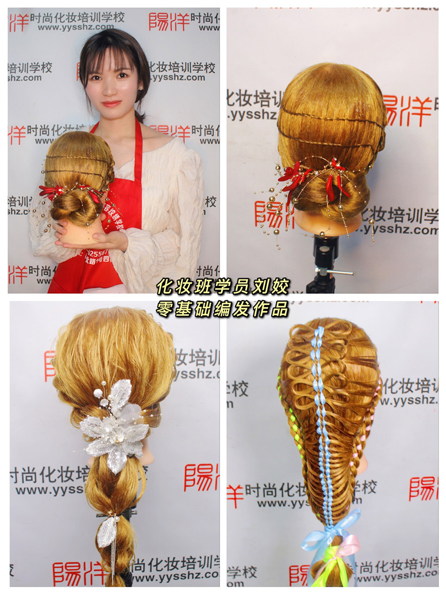 以上這些同學(xué)都是零基礎(chǔ)學(xué)習(xí),才學(xué)習(xí)一周哦。、 她們?cè)诶蠋熞粚?duì)一的指導(dǎo)下,從基礎(chǔ)的編發(fā)手法到 現(xiàn)在能夠完整的做出 各種編發(fā)造型、她們每天都非常的努力學(xué)習(xí),現(xiàn)在都很棒,加油! 陽(yáng)洋化妝培訓(xùn)學(xué)校常年招生:不限年齡、不限地區(qū)、不限性別、 對(duì)美業(yè)感興趣,想學(xué)一門(mén)技術(shù)的都可以來(lái)咨詢哦~