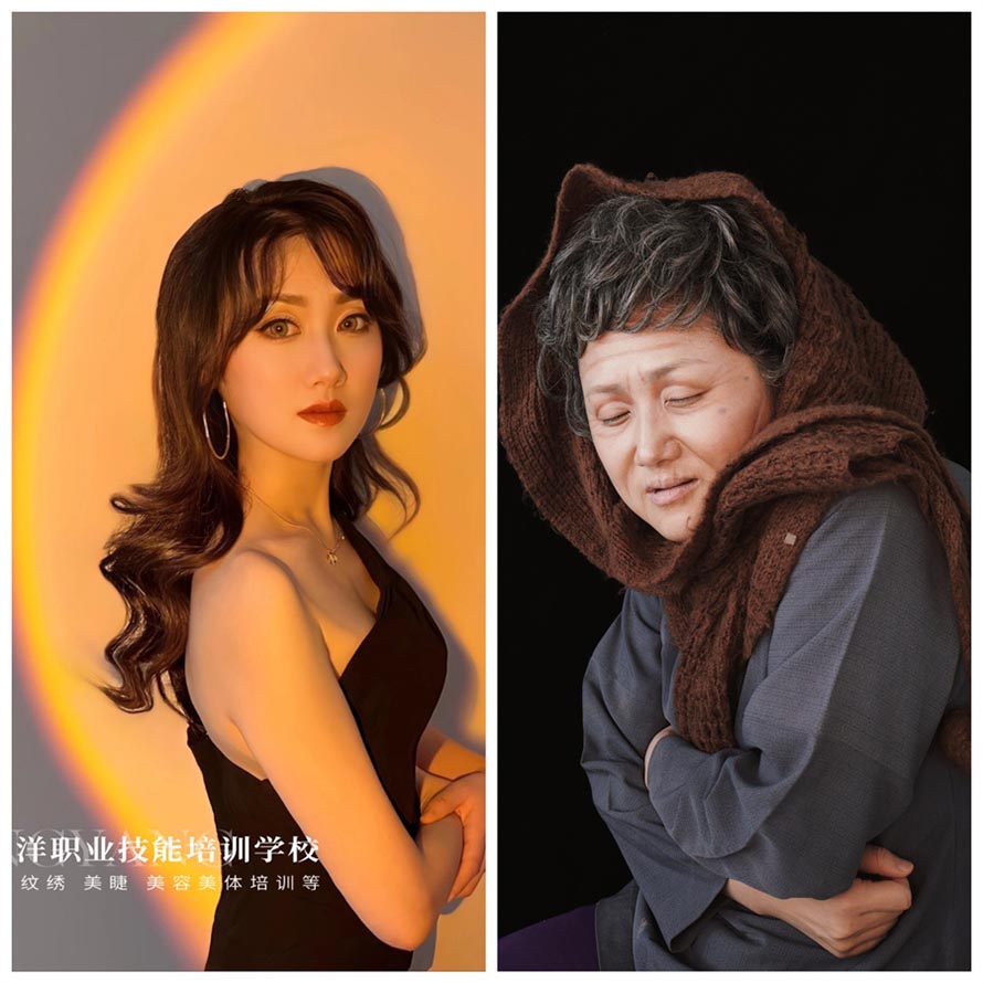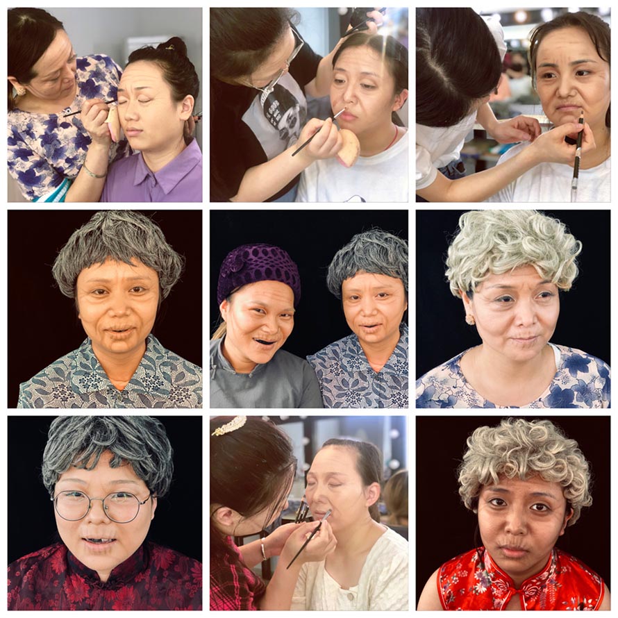 老人妝跟其他妝容對比。同一個模特是不是區(qū)別很大呢?