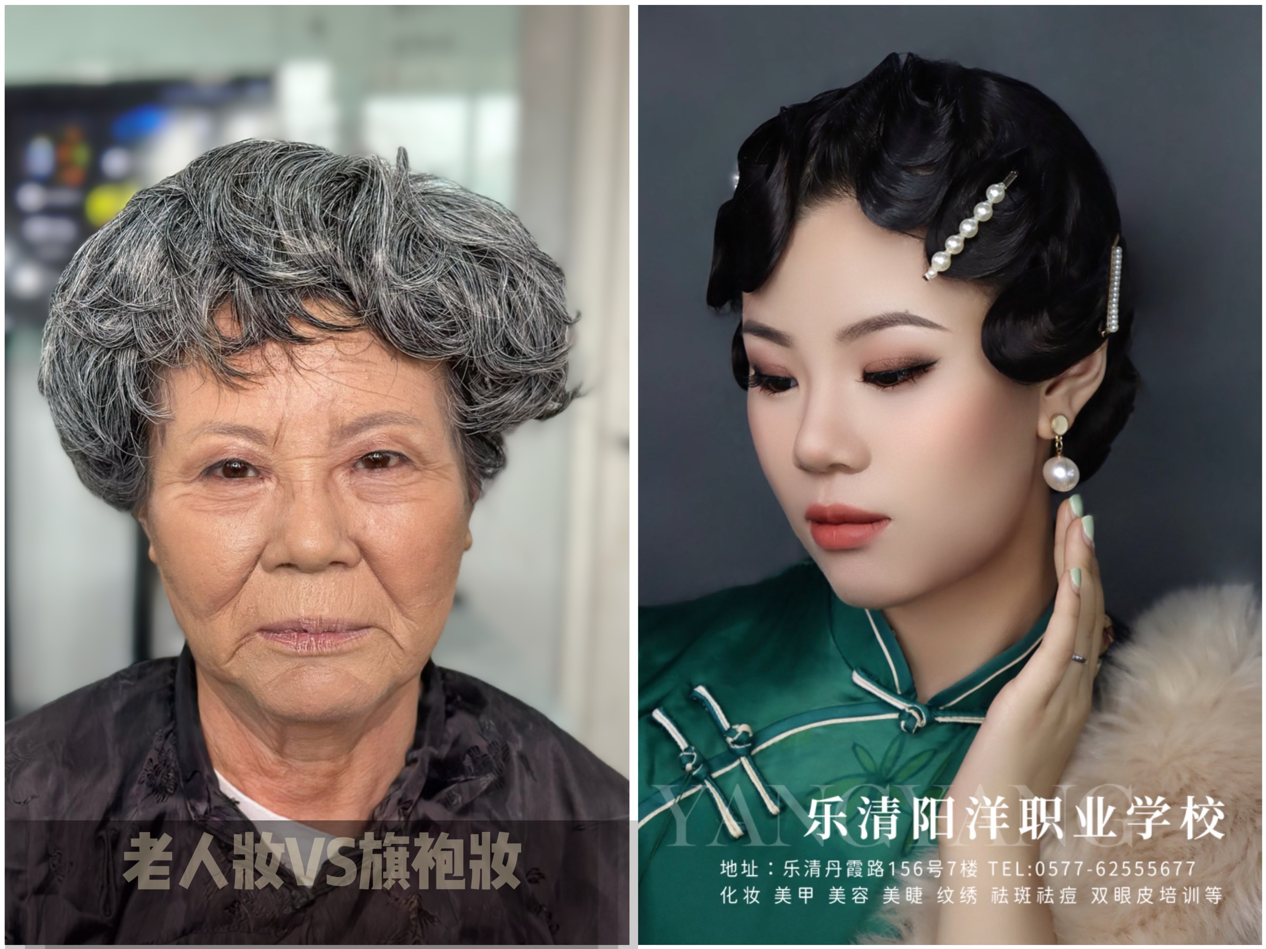 20歲來自樂清的學(xué)員老年妝的自己和旗袍妝的自己對(duì)比
