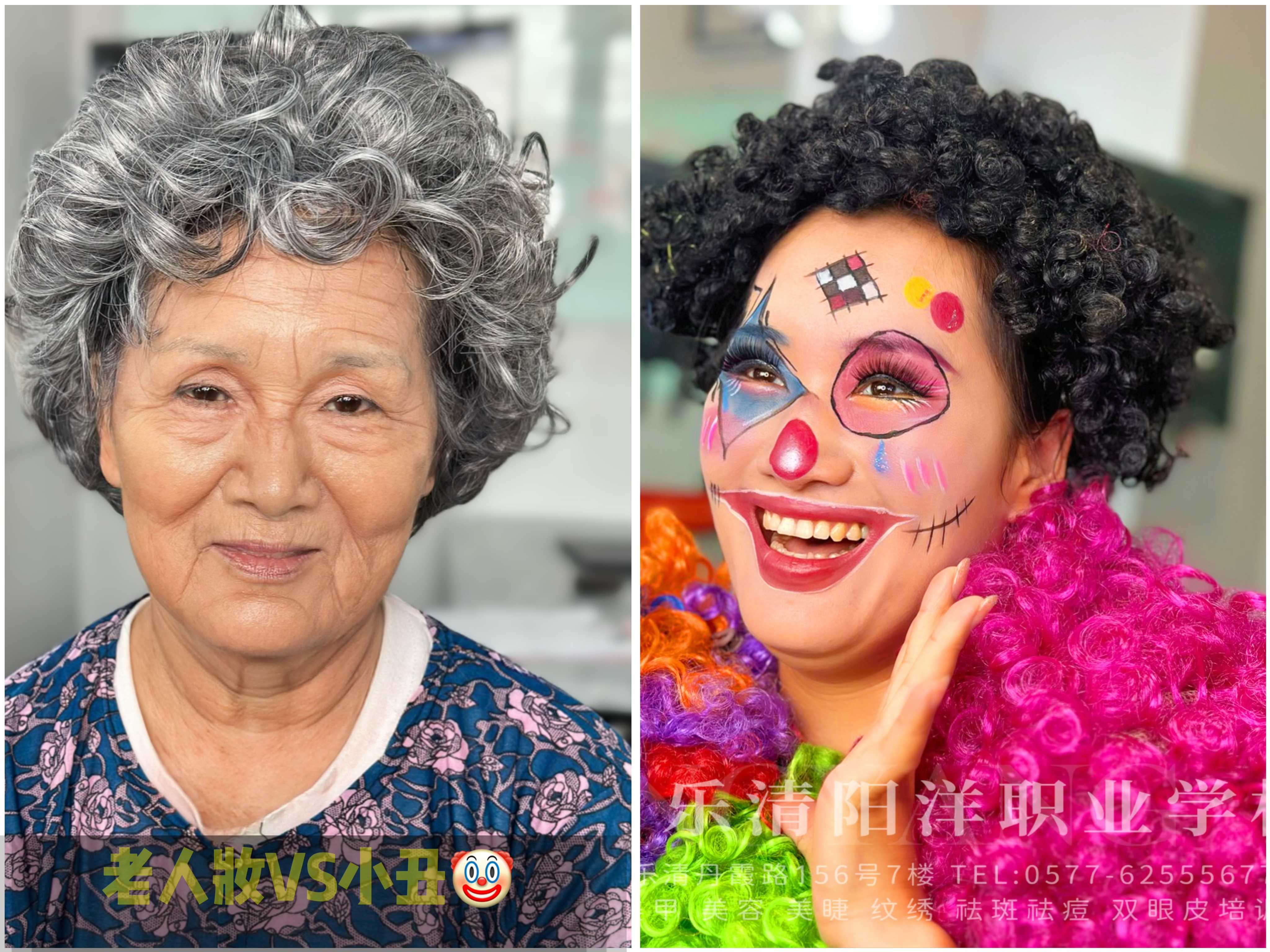 來自貴州27歲學(xué)員老年妝和小丑妝對(duì)比 以上是部分學(xué)員課堂練習(xí)作品、老年妝的皺紋代表代表歲月的痕跡、學(xué)習(xí)技能改變自己、珍惜年輕的自己 學(xué)化妝就來樂清陽洋職業(yè)技能培訓(xùn)學(xué)校