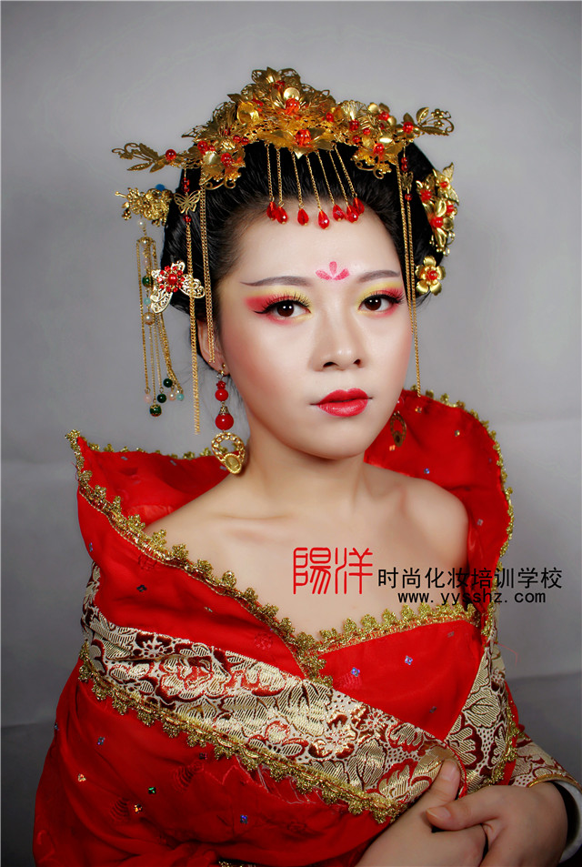 今天,樂清陽洋化妝美甲紋繡培訓學校的小編教大家一款超美的唐妝造型,帶你領(lǐng)略唐妝風采?。。?/span>
