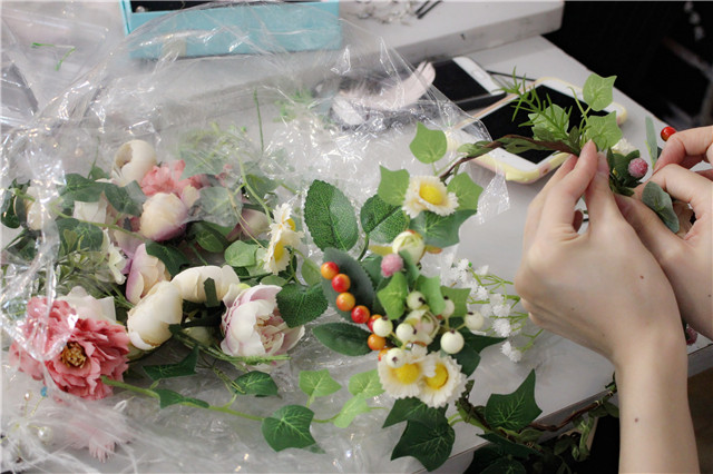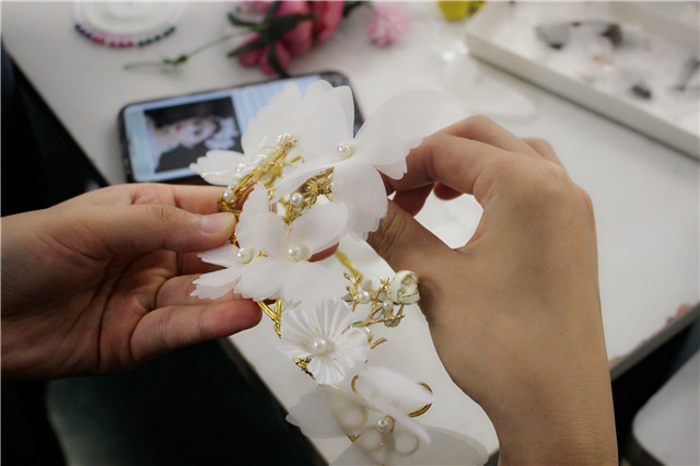 使用絲綢制成的花朵發(fā)飾,往往看起來也有鮮花般的光澤度,還不必?fù)?dān)心它的凋謝。用其它材料制作的花朵頭飾也一樣,例如布料。通常會(huì)使用長(zhǎng)發(fā)夾來固定這些花朵。
